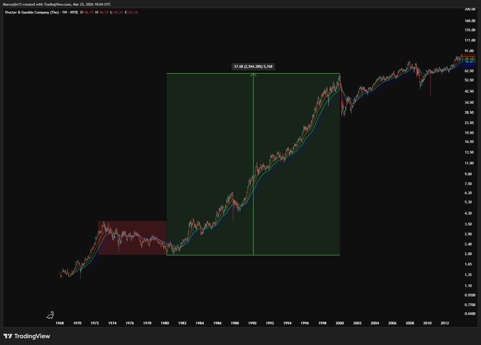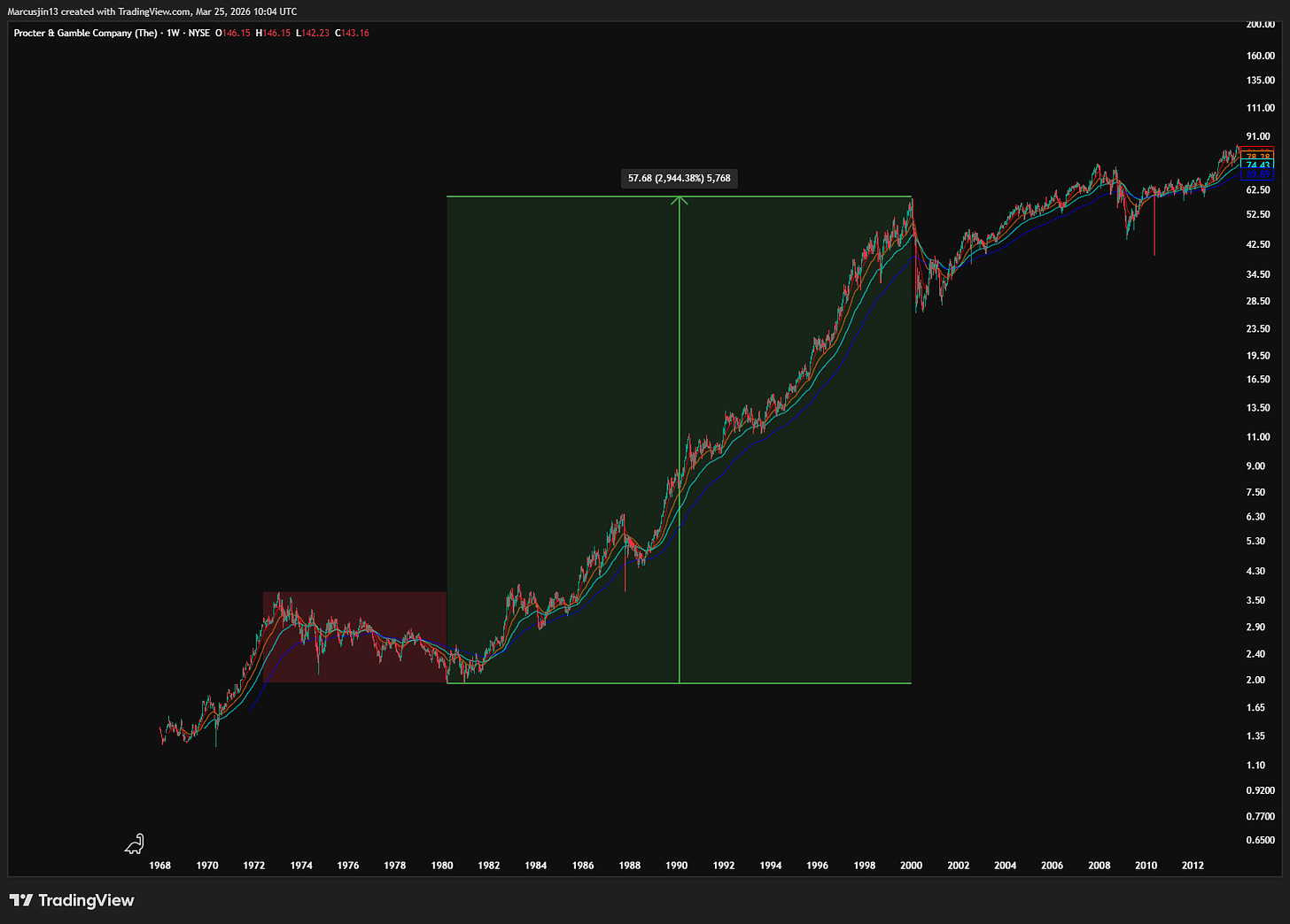 通膨不會永遠維持高檔,美元貶值也不會成為未來數十年的唯一主旋律。你甚至告訴他們,一家賣洗衣粉的公司 —— Procter & Gamble,在經歷了將近 10 年的股價下跌之後,未來 20 年將上漲 30 倍。